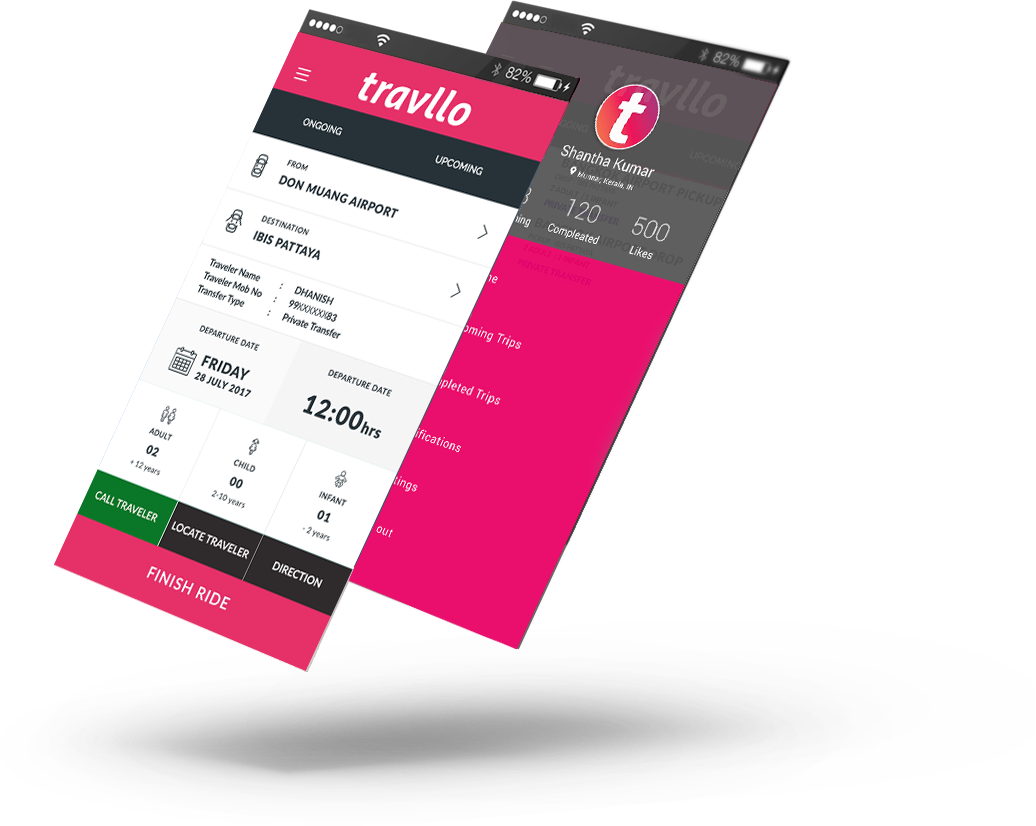 Travllo App Includes traveler trip informations. The app allows travllers to track driver status